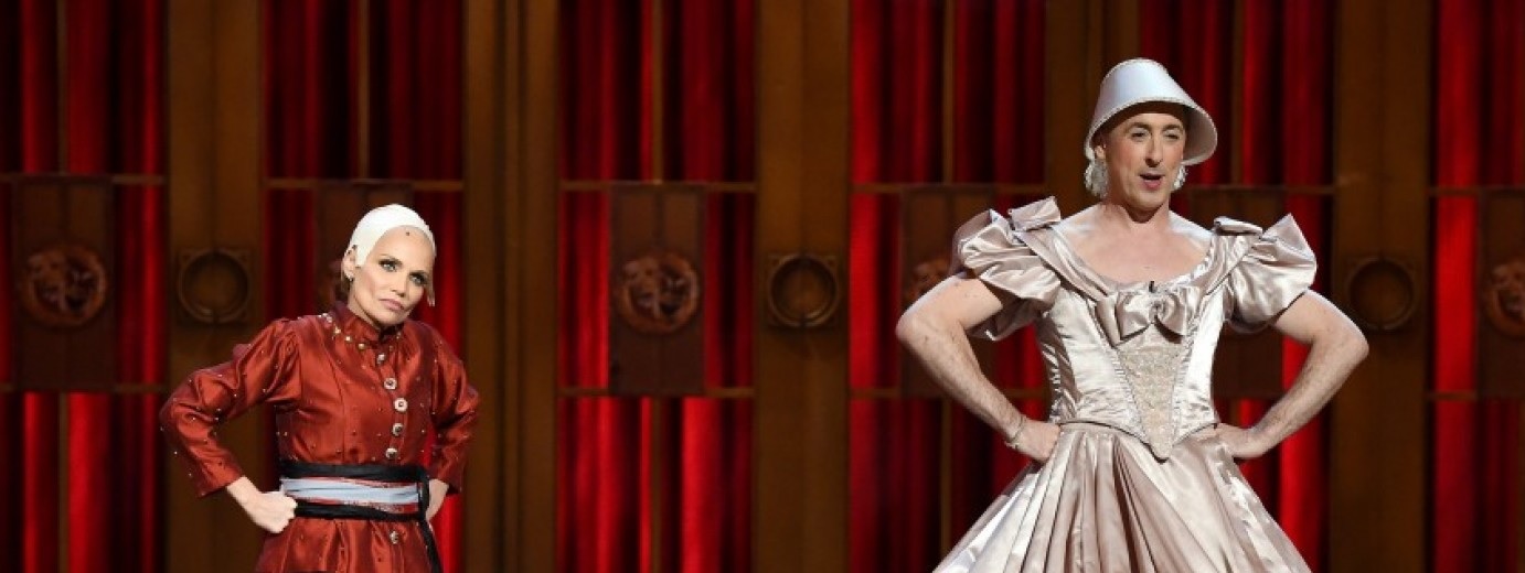 Alan y Kristin hicieron alusión en varias ocasiones a bromas de "quien es la chica y quien el chico" y eso desembocó en un guiño a la obra The King and I, donde Cumming vestido con un portentoso vestido al estilo "Shall we Dance?" y Cheno saliendo de su falda vestida como el rey de Siam (¡con calva incluida y todo!). Delicioso también el homenaje al gran Tommy Tune, quién recibió el Lifetime Achievement Tony. Todo un acierto.